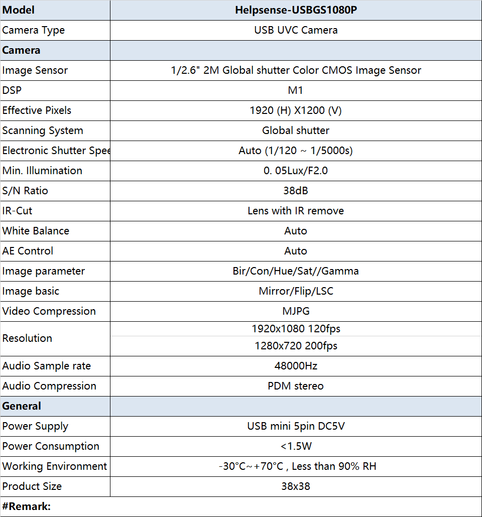 CS-mount lensGlobal ShutterAR0234 1/2.8 ·UVC/UAC/OTG·1920*1080120FPS·UVC/UAC/OTG·USB2.0