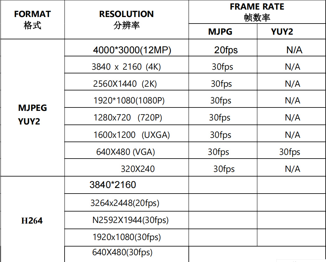 4000*3000@20FPS