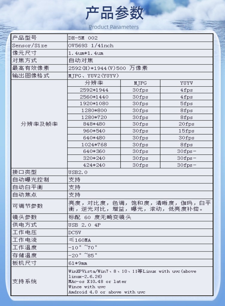 OV5693 high-definition pixel 2K camera facial recognition all-in-one computer camera module without drive